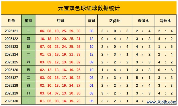 上期回来:双色球第2025130期开出奖号:红球01、05、08、14、19、23;蓝球06,其中红球三区比为3:2:1,奇偶比4:2,蓝球开出小偶数号码06。